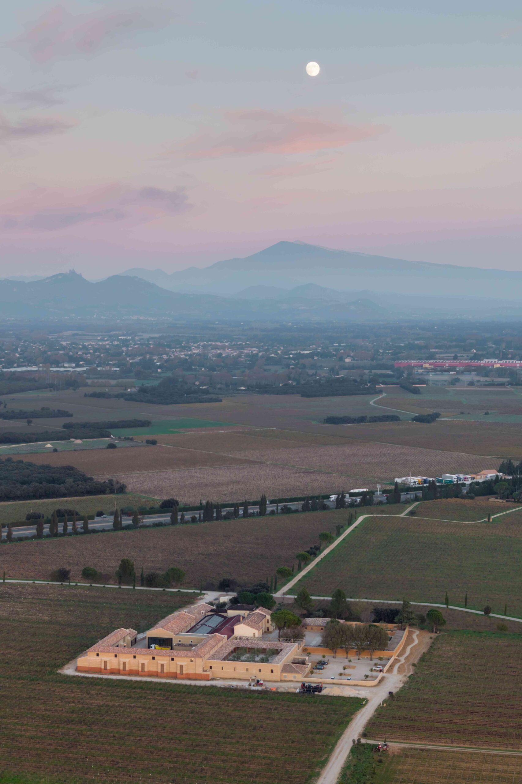 This was no simple reconstruction of the Beaucastel winery, which was overdue for an overhaul. The mandate given to the project architects by the family was that it should not only be future-proof but also speak strongly of the land on which it was built: the galets roulés, the powerful Mistral wind, and the instantly identifiable landscape with its bush vines.