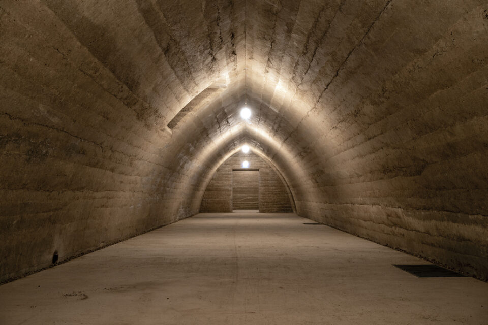 The famous ‘rammed earth’ walls are evident in every part of the rebuilt winery